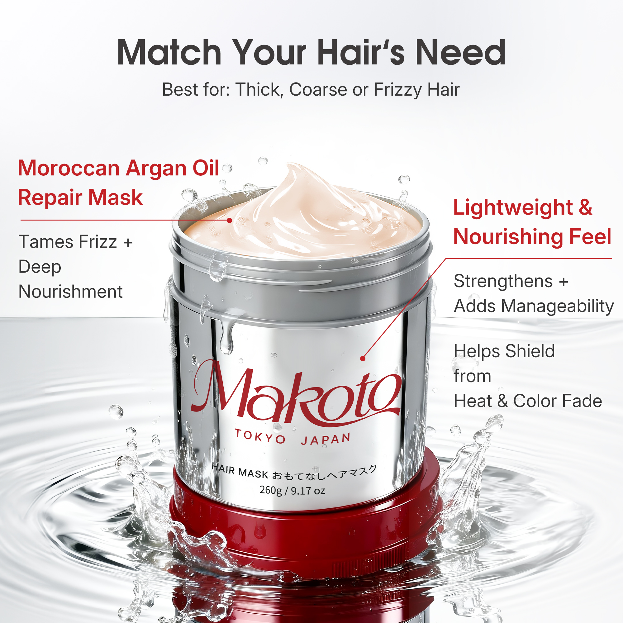 Product information "Makoto Moroccan Oil Hair Mask for Damaged Hair - Deep Conditioning Keratin Treatment with Argan Oil(9.17oz)"
